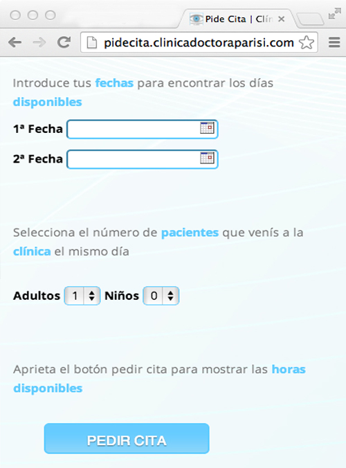 Diseño de la Interfaz de Reserva Online de Cita Previa para clínica oftalmológica.